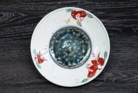 砥部焼 中田窯 5寸リム皿(灰釉加彩)